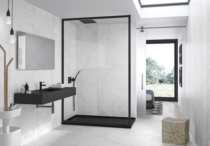 This material is used very often when creating designs for bathrooms, because it has unique characteristics of strength and durability. However, in rectangular shower cubicles, cast-iron trays are not often seen. This is all due to the excessive weight of such elements, which complicates installation, and also because of the enamel coating, which quickly comes off from bumps and scratches. The advantages of cast iron include reliability, as well as low thermal conductivity, which allows it to quickly heat up and retain heat for a long time.