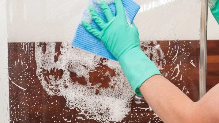 Before you start washing the booth, you should make sure that the product used does not contain such components as solvents, that it lacks formaldehydes or acids. Also, when buying, you need to focus on how much the composition you purchased interacts with a certain material.