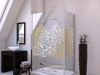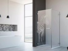 Shower manufacturers often use laser engraving technology. With its help, images of any complexity are recreated on the glass surface. For example, on the partitions, flowers, animals, birds, cities, hoarfrost, waves are depicted.