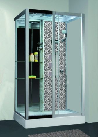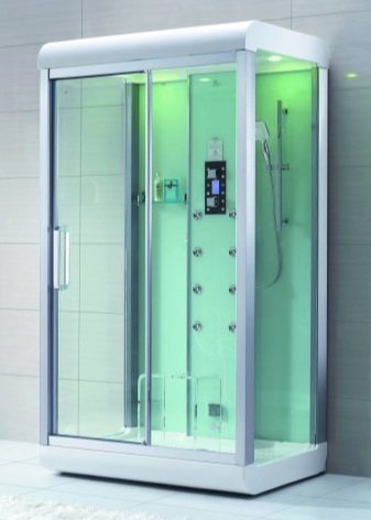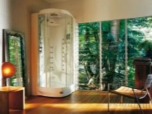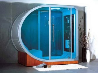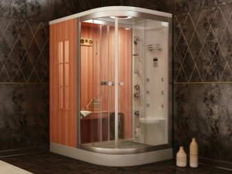 Some multifunctional hydroboxes have a sauna. Such systems include 2 cabins - one for taking water procedures, the other for the steam room. For facing saunas, wooden surfaces are often used. With their help, it is possible to create an atmosphere of a full sauna or bath.