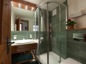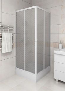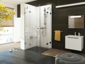 - Open construction. It is a cabin integrated into the layout of the room. Such models are classified as prefabricated. The design includes a pallet and walls. Systems are installed close to one or two walls, tiled with ceramic tiles.