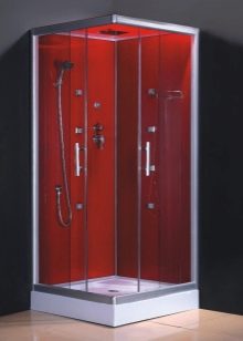 Shower hydroboxes can be colored. They are made of tempered stained glass or plastic. A colored shower cubicle is not only an important sanitary product, but also an exclusive piece of furniture. Particularly popular are blue, blue, pink and greenish partitions.