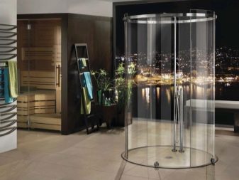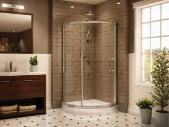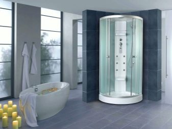 - Round. They are distinguished by a stylish design and original appearance. They are most often chosen by owners of spacious bathrooms. Such models can be installed both near walls and in the center of the room. Most round cabins have a radius of 90 to 120 cm.