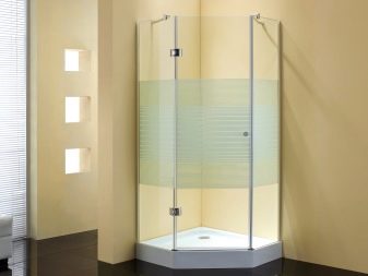 - Pentahedral. Like corner models, such solutions are designed for installation in one of the corners of the bathroom. Cabs with faces look more interesting than semicircular counterparts with smooth streamlined shapes. They have the exact same dimensions as the corner options.