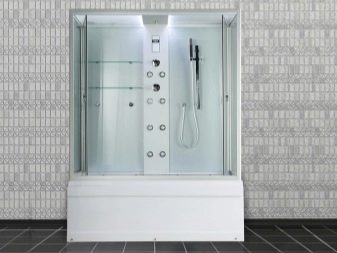 - Combined designs. The main feature of these models is the presence of a bath instead of a tray. They include walls and a ceiling (there are options that do not have a ceiling base). A significant advantage of such solutions is the combination of all the advantages of a shower and bath in one system. The disadvantage of the combined design is the high cost.