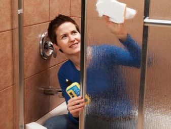 To wash the shower cabin, it is necessary to use a gel-like detergent, soft rags or a sponge. For these purposes, compositions with abrasive particles, containing ammonia, solvents or acetone, are not suitable. All chemically aggressive substances should be excluded. To avoid damage to the surface, do not use a metal or excessively stiff sponge. For cleaning and polishing showers are sold specialized formulations specifically designed for these purposes.