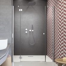 Great for a niche door Bravat Drop BD120.4100A. The product belongs to the Drop collection. Dimensions of the structure are 1.2 m, and the height is 2 m. The style is hi-tech. The chromed profile works very reliably, as does the sliding mechanism.
