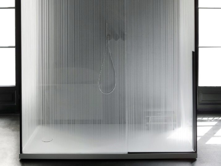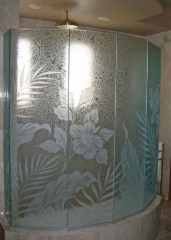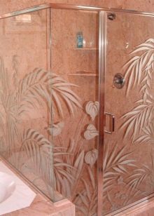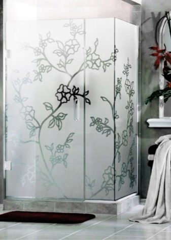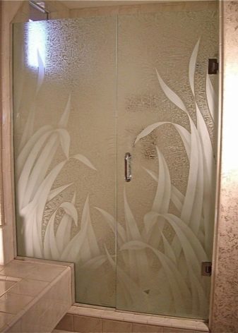 It is often believed that frosted doors to the shower cabin are always white. But in reality this is not so - the designers have worked out a lot of original solutions. Matting is performed: