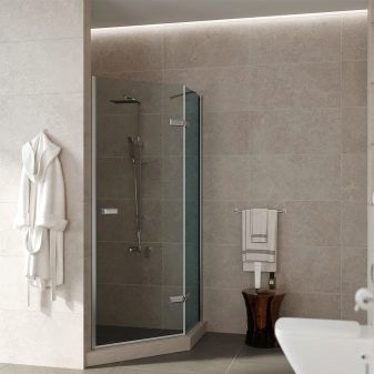 Deserve special mention corner doors. They are valuable for their unique appearance. Such designs can guarantee excellent aesthetic properties of the shower and the bathroom as a whole. You can organize openings even where it is prohibited for architectural reasons.