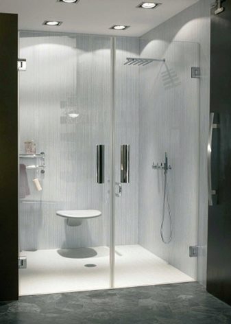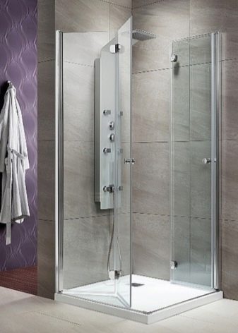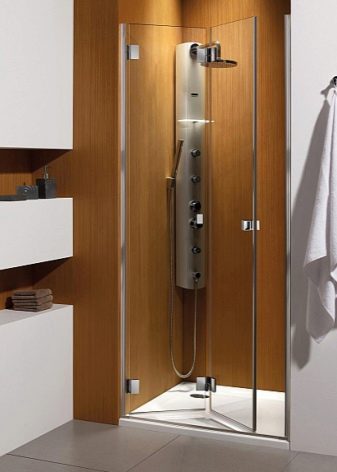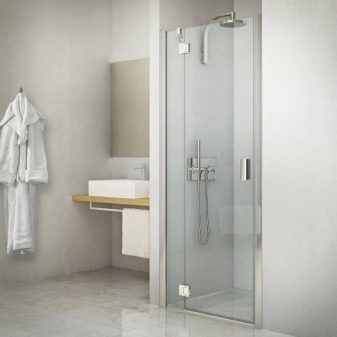 The very name of this type of shower door comes from the fact that they open. Such a solution is almost always suitable for the bathroom and has both positive and negative sides. Doors are equipped with hinges connecting the box and the canvas. They will help to keep the canvas inside the opening.