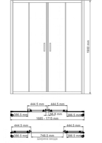 From products made in Russia, it is worth taking a closer look at the brand's shower doors River Model Dreike 150 It can be equipped with frosted or tinted glass. Consumers can choose between white and chrome. The four-section sliding door works very reliably. Its width is 1.5, and the height is 1.85 m; the rollers themselves are adjusted as necessary.