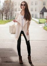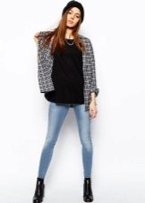 You can combine leggings imitating jeans with any clothes, but they look more successful with a tunic, an extended T-shirt or sweater. Tall slender girls can safely combine models with a low waist and a short top, and owners of curvaceous forms are advised to wear loose clothing that will cover their hips. As for the cold season, jegins will go well with any outerwear, whether it be a jacket, vest, sheepskin coat or fur coat.