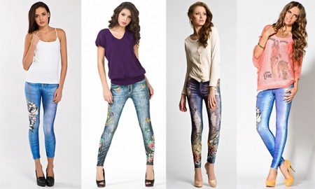 Leggings imitating jeans are produced in a variety of color variations, which gives girls freedom of choice and the ability to combine with clothes of different colors. Undoubtedly, the selection of the color gamut of clothes is a purely individual matter, butFor drawing up a harmonious image, it is not superfluous to listen to the recommendations of designers.