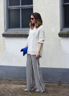 - Pants of fashionable models, such as a palazzo or culottes, can be worn in gray tones or to create a total white bow.