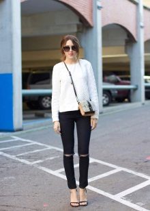 - With jeans. This is the most common option for popularity. You can choose jeans of any model or length. It all depends on the image you choose.