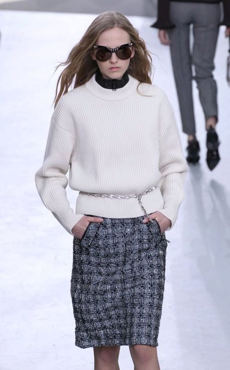 Strictness and simplicity - this is the key to a successful office bow. Wear a classic sweater with a dark skirt. For accessories, select a watch or bracelet.