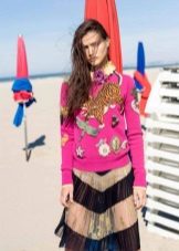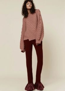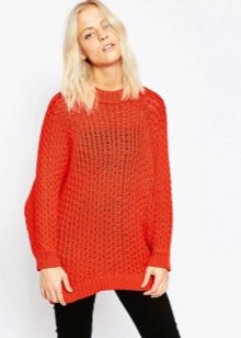 Today, a red sweater is in fashion, especially its best shades. For example, berry, mountain ash, coral, which looks fresh and fervent.