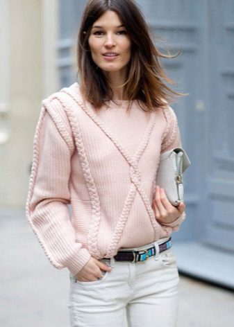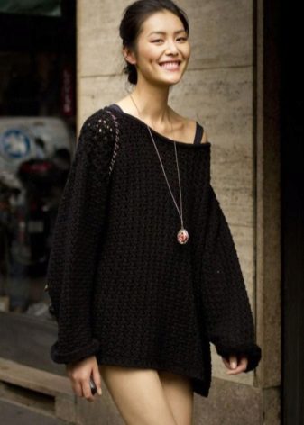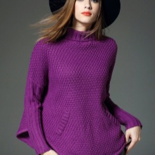 If you want to buy a free sweater, choose a model from smooth knitwear 1-2 sizes larger. Volumetric models with braids and other knitted elements are not for everyone and often look ridiculous.