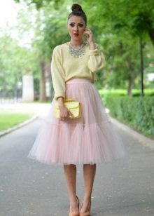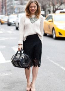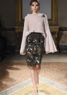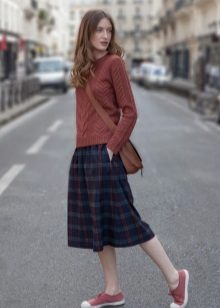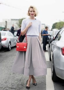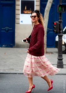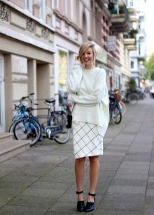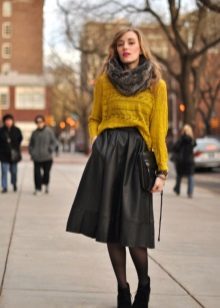 If you are creating a romantic or festive look, give preference to an A-line skirt, a lush or pleated model. The latter looks particularly elegant with a tight knit sweater.