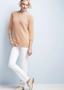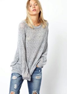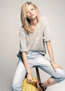 If you have acquired a light model of thin knitting, you can tuck in front in jeans, leaving the drooping back.