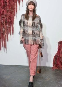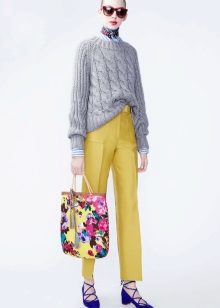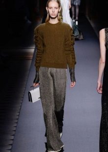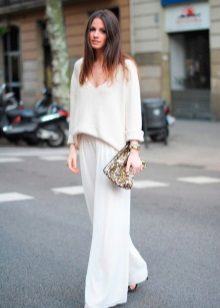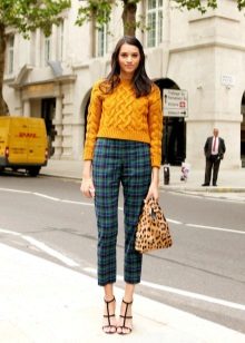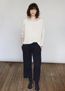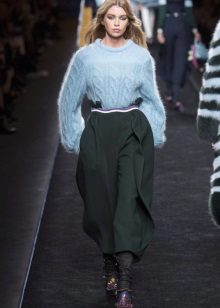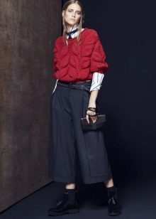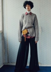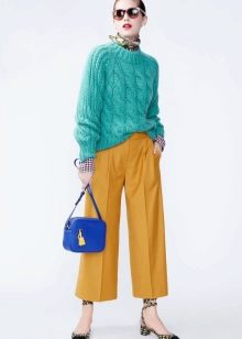 With a shortened fitted sweater, palazzo pants or culottes are perfectly combined. Be sure to pick up the heeled shoes to them, so as not to seem wide and squat. Do not forget about stylish accessories.