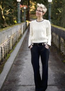 In everyday looks, a jumper can be worn with jeans or trousers.