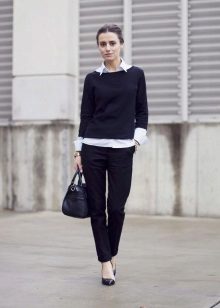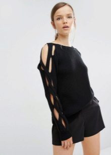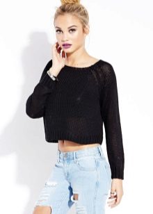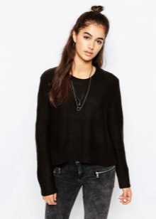 The classic black sweater is a universal thing that will always remain relevant. Well, creative young ladies can choose for themselves a fashionable style with a variety of finishes.