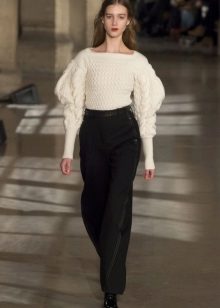 A wide loose sleeve with a large armhole was popular in the 80s, but today it has not lost its relevance. This is the simplest, but also the most convenient form of the sleeve, so such a jumper is very comfortable, does not constrain movements and looks stylish.