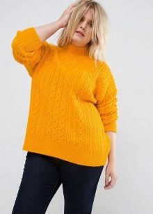 When choosing a jumper, full girls should pay attention to the shape and volume of the product. Too voluminous models of thick yarn and products of light shades will not suit you.