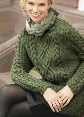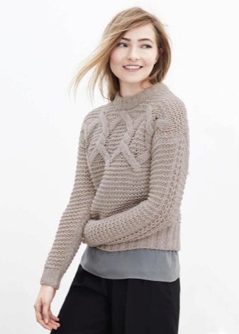 - A sweater with braids is ideal for winter or late autumn, and skilled craftsmen who prefer to work both with a crochet and knitting needles can knit it.