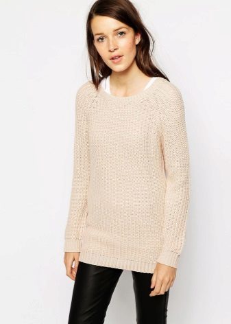 The ideal solution is concise neutral models that are suitable for girls with any type of figure. It can be a classic straight cut sweater with a round neckline and small cuts.