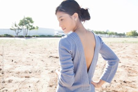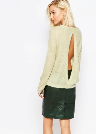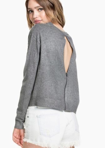 A sweater with a neckline on the back looks very seductive. Usually this is a model that is deaf in the front, but has a V-shaped or teardrop-shaped neckline on the back that reaches the waist itself.