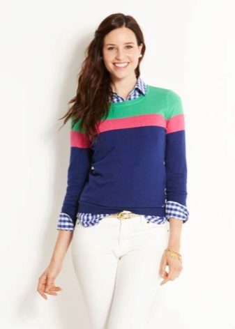 Women with a pear-type body suit a sweater with a collar. If you are the owner of a large breast, give preference to a cutout "boat".