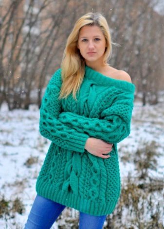 - Elongated. Most often, this is a wide model knitted. Best combined with jeans.