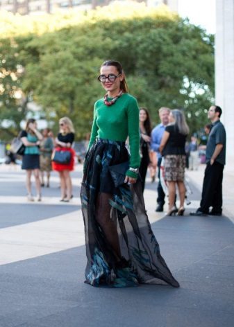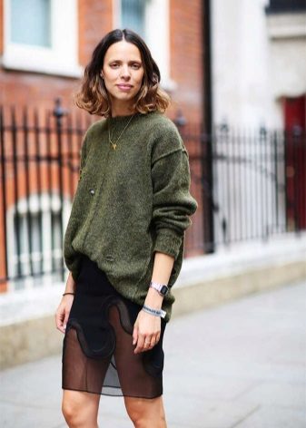 - Black in a duet with green will add brightness to your everyday look. Pants, tight or classic, we recommend wearing jeans with a filled jumper. A pencil skirt, a skater skirt or other models of black skirts look feminine with a green sweater.