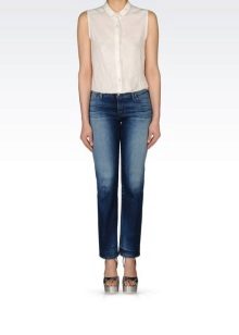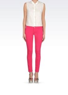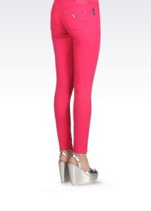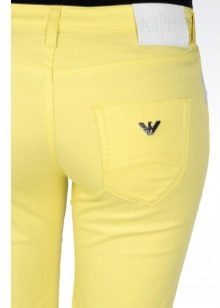 - In the latest line of jeans from Armani, in addition to traditional blue and blue trousers, models of bright and light shades are presented - white, beige, pink, etc. Such things can become the basis for creating a stylish and original image, so we advise you to take a closer look at the jeans of non-standard colors.