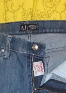 - The appearance of jeans will also help you not to make a mistake with the purchase. For clothes from Armani, a classic style and a minimum of decor are characteristic. Too catchy things with a lot of jewelry of dubious quality, most likely, only a cheap fake.