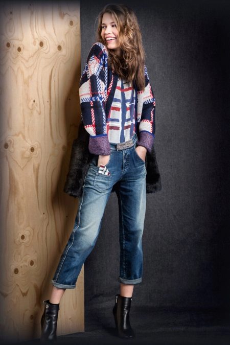 - Jeans from this manufacturer are made of the highest quality denim, in which the content of synthetic fibers is minimized. Therefore, during fitting and in the early days of socks, it may seem that the pants are sitting very tight and constrain movement. However, after a little time, the fabric will become more elastic and fit perfectly.