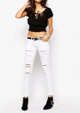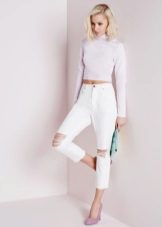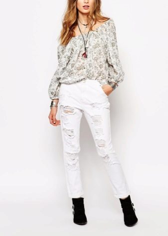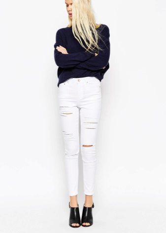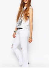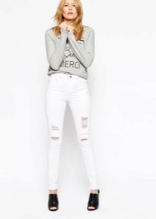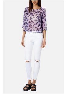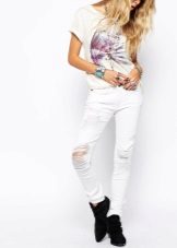 White ripped jeans have many advantages over other styles and colors. So, they will help to show the figure in a winning light, give the image of freshness, sexuality and style.