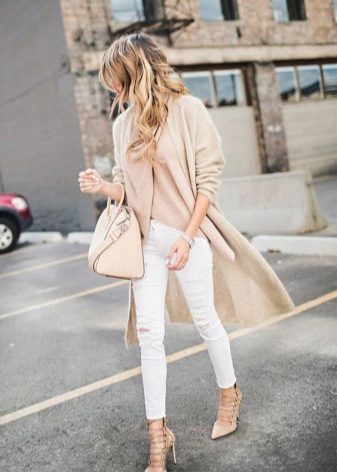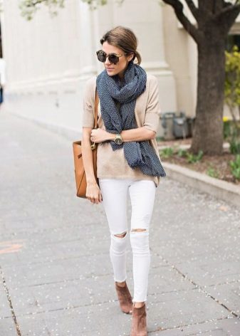 White ripped jeans should be combined with wardrobe elements in delicate pastel or neutral colors. Thus, your image will look simple and easy.
