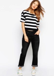 Be sure to pay attention to the fact that boyfriends always have an underestimated waistline! Unlike girlfriend jeans, which are a more feminine model of boyfriend jeans. They sit on hips higher, and by themselves are narrower and more compact. That is, have not skinned yet, but not boyfriends.