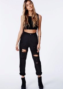 The perfect casual look is jeans with boyfriends with holes, a crop top and comfortable sneakers or sandals. Do not forget about a capacious bag and sunglasses.