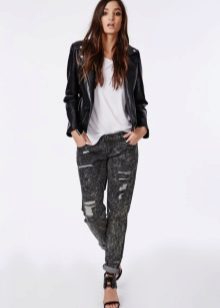 If you choose jeans-boyfriend for off-season or winter season, give preference to black or gray. These are basic colors that are easy to mix with clothes of almost any color.