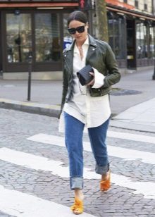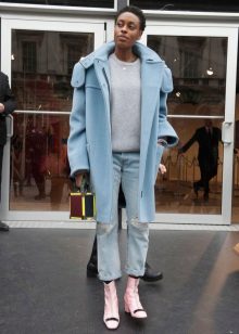 Boyfriends go well with any outerwear. It can be a stylish parka that suits every day, a classic coat for business images or a fur coat for publication. True, in the case of the off-season, everything is individual.