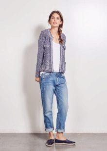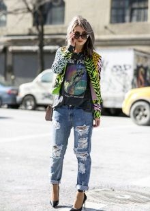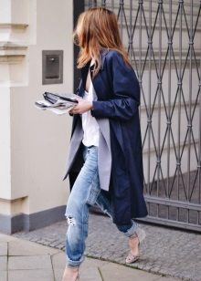 The ideal everyday look in the offseason is boyfriends, a T-shirt, shirt, sweatshirt and a jacket, bomber jacket or jacket. Shoes can be chosen to your taste - sneakers, boats or ankle boots with thick heels.