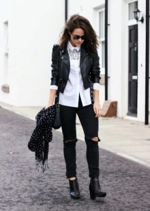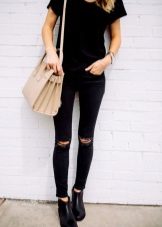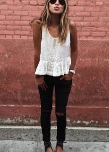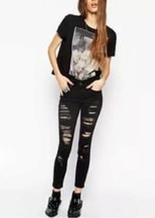 If you want to wear black ripped jeans for a romantic date, then you need to carefully consider your outlook. For example, a top or tunic of delicate, pastel colors will look attractive. You can pick up the top in black, but then it should be decorated with decorative elements.