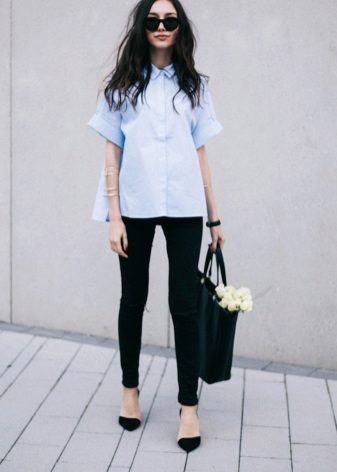 If you decide to wear high-heeled shoes, then when choosing a top, you should give preference to a shirt, jacket or blouse. It is better that the upper and shoes are chosen in the same color.