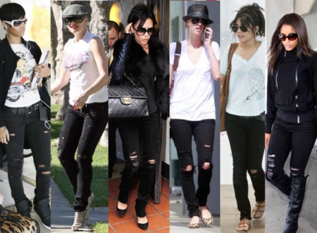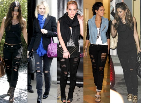 Many celebrities have ripped black jeans in their wardrobe, which are very often used to create a casual look.