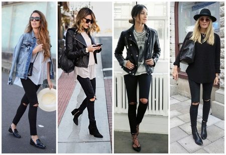 When choosing shoes, the ideal solution would be sports models: moccasins, sneakers or sneakers. To create a delicate look with black ripped jeans, pair wedge shoes.