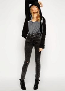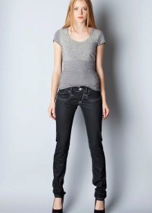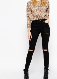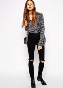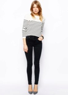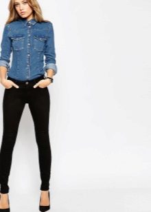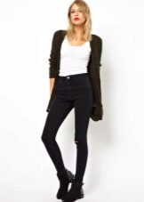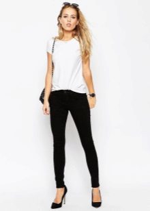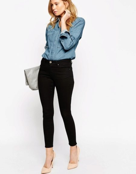 Black skinny jeans, which fit perfectly in shape, are in great demand. This style allows you to visually lengthen the silhouette, so it is preferred by girls of short stature. Slender fashionistas with long legs from this model is better to refuse. But if you want to wear this particular style, then it is worth combining flat shoes with an elongated jacket.